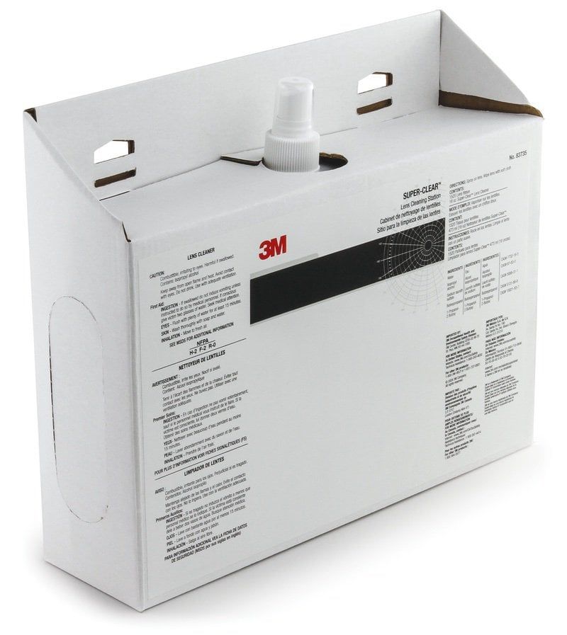 A falra szerelhető 3M™ Lencsetisztító adagoló tartalmaz egy üveg lencsetisztító oldalot és 400 törlőkendőt. Kiváló megoldás nagy ipari felhasználóknak.